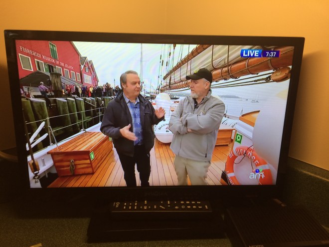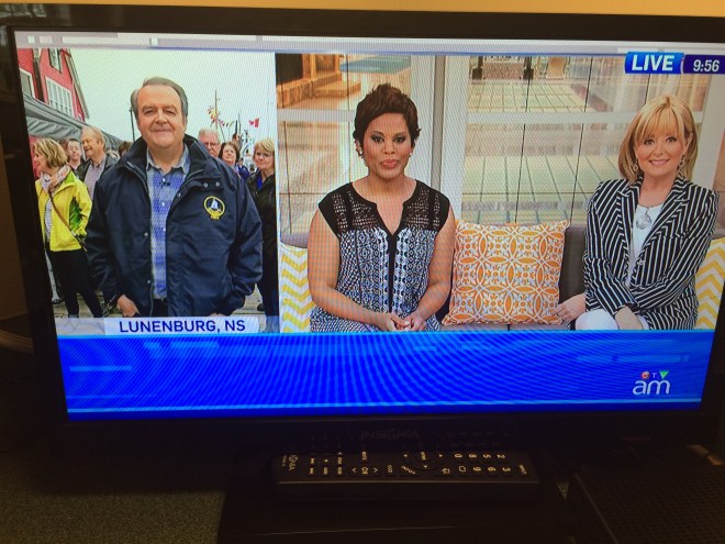 So, I debated …”Do I go, or do I stay?” Go in to Lunenburg? It’s only 20 minutes from my home. It would be so much fun to see this broadcast LIVE. OR…do I stay at home and watch it with my favourite coffee in hand like I do every morning. Canada Am is actually part of my morning routine. Hmm?