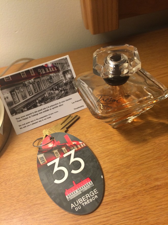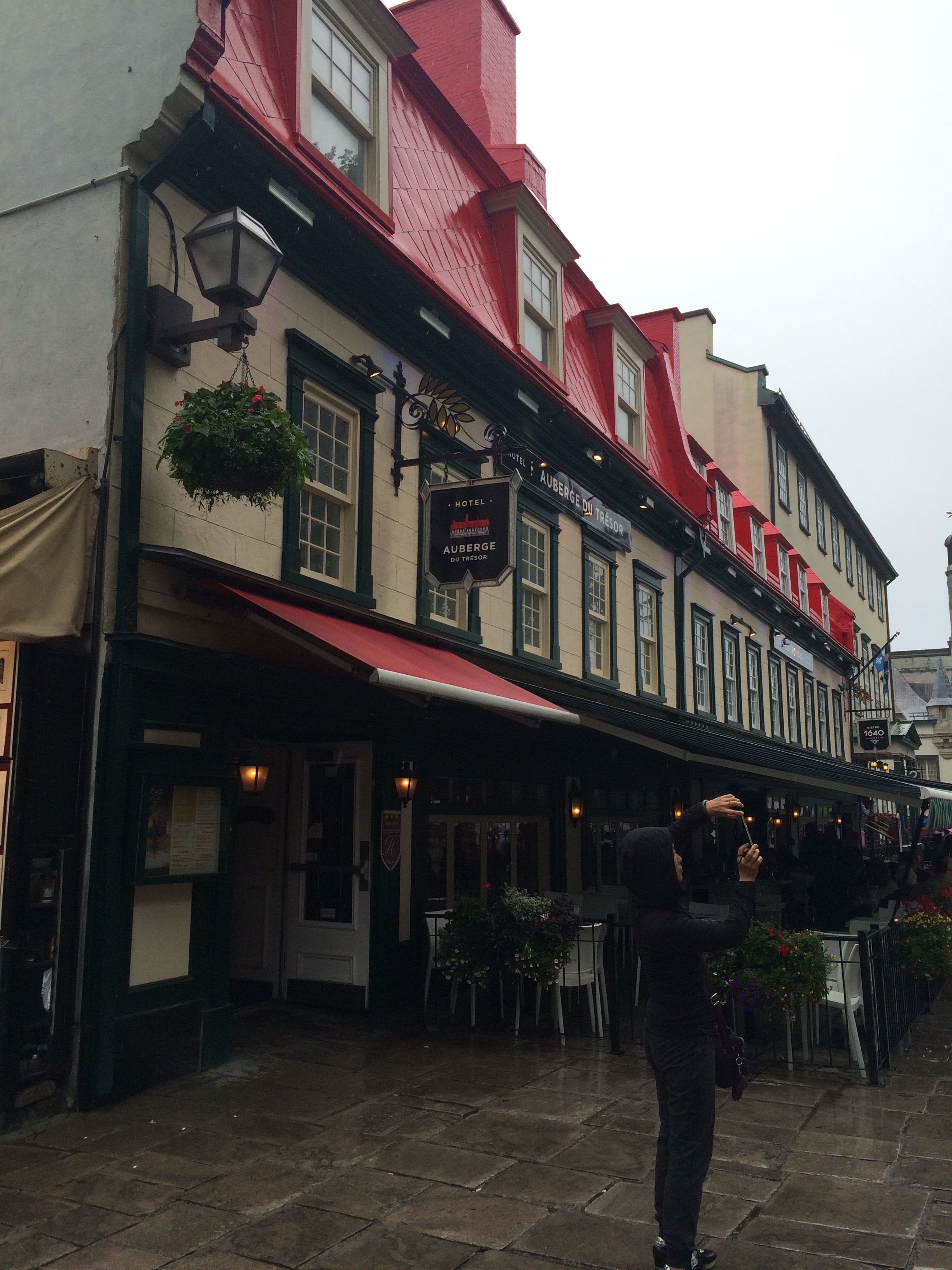 We are staying in a quaint hotel Auberge du Tresor right in the heart of Old Quebec. We have stayed in this area on past Anniversaries, I LOVE it!