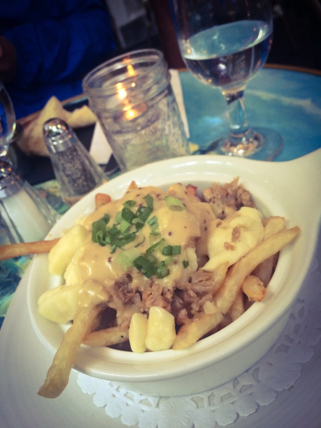 Had a nice dinner, actually at a “Rabbit Restaurant” lol French Onion soup on this rainy day and Rabbit Poutine were my choices.